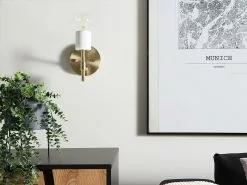 Beliani Conjunto De 2 Lámparas De Pared De Metal Dorado/blanco ARMERIA
